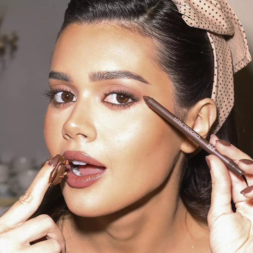 O CHOCOLINER é um lápis multifuncional: ultra pigmentado, à prova d’água e de longa duração. Ele permite criar delineados impecáveis, dá para criar um efeito esfumado mara e, como contorno labial, define e valoriza os lábios, entregando o contraste perfeito para combinar com batons e gloss.